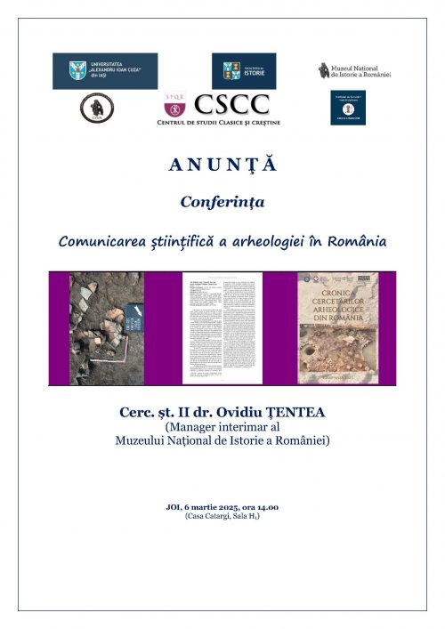 6 martie 2025- Conferinta Comunicarea științifică a arheologiei în România susținută de Cerc. st. II dr. Ovidiu ȚENTEA, manager interimar al Muzeului Național de Istorie a României