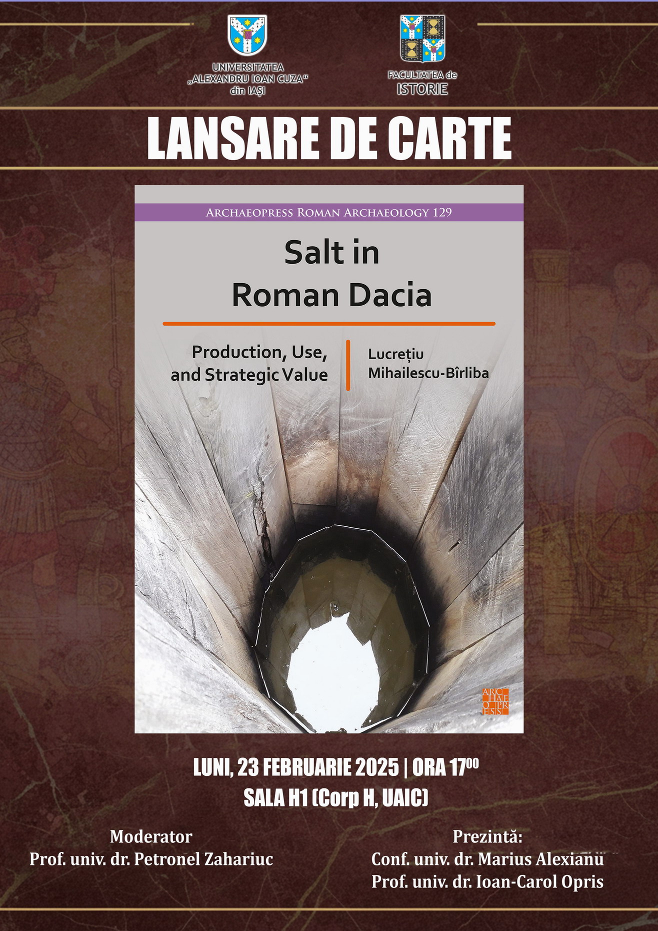 23 februarie 2026 – Lansare de carte: Lucrețiu Mihailescu-Bîrliba, Salt in Roman Dacia. Production, Use, and Strategic Value, Archaeopress, Oxford 2025